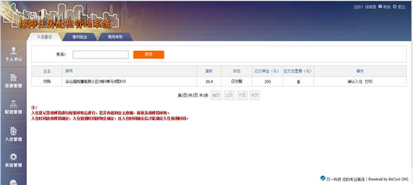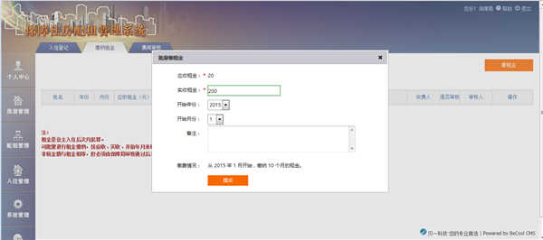 入住管理(lǐ)中包含入住登記、租金繳納和費用審核等功能,并支持租金多月繳納。