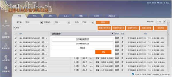 房(fáng)源管理(lǐ)中包含房(fáng)屋添加、授權物業及指揮部、設定是否手動選房(fáng)等功能,支持單個和批量操作(zuò)、增删改查等功能。并提供詳細的房(fáng)屋日(rì)志供查詢。