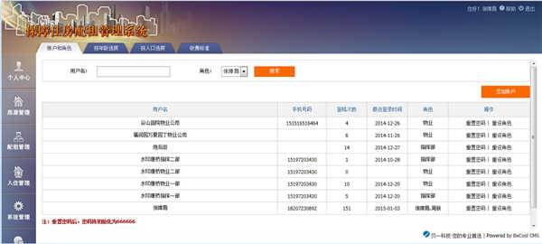 系統管理(lǐ)中包含用戶角色及權限管理(lǐ)、選房(fáng)條件(jiàn)管理(lǐ)及費用标準設置等功能。