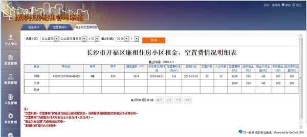 統計(jì)分(fēn)析中包含以小區和業主爲主線的租金和空置費統計(jì)功能。