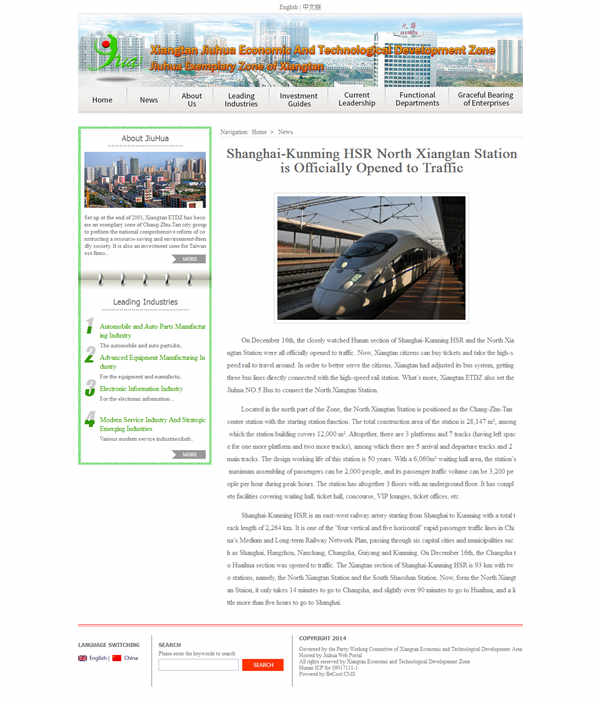湘潭九華經開區英文網站(zhàn)首頁效果圖