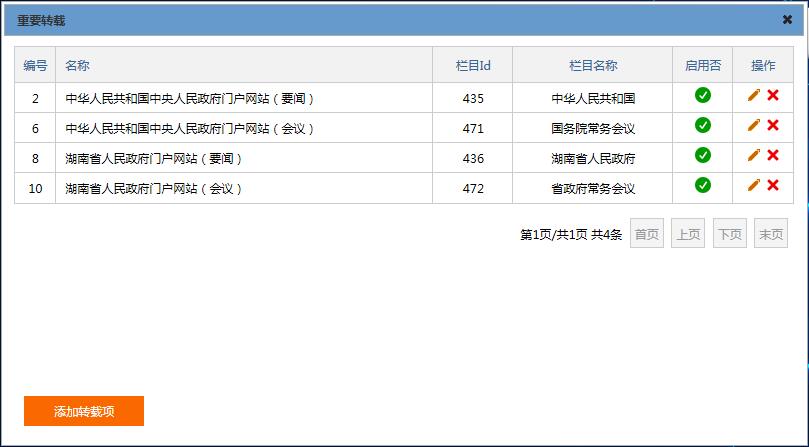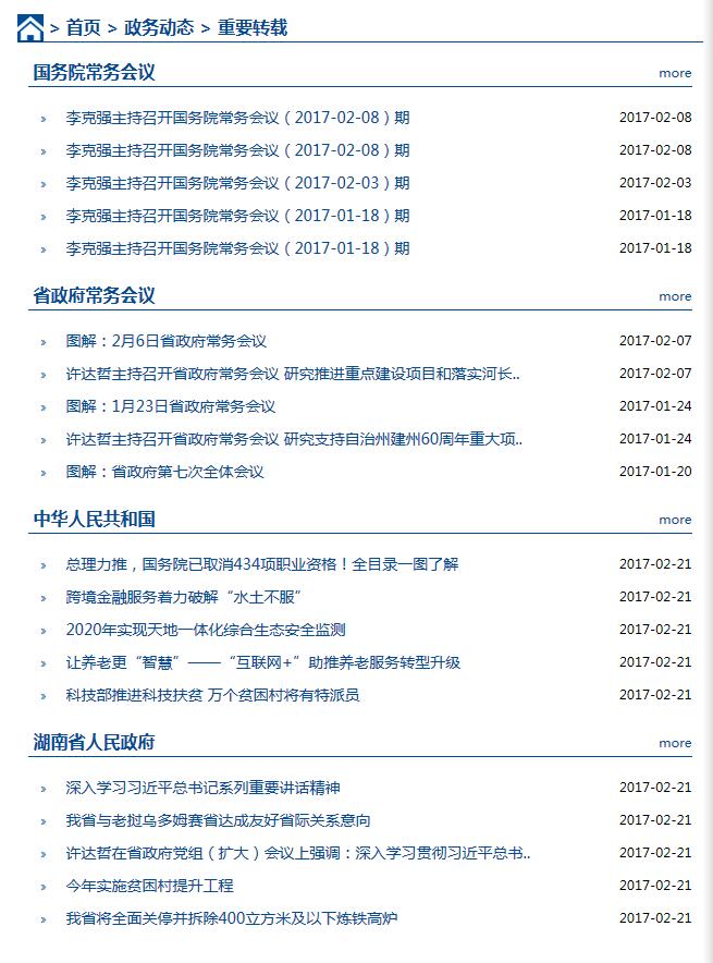 此功能爲政府類黨政機(jī)關單位官方網站(zhàn)必備功能,定時對上級(國(guó)務院、省政府等)指定欄目的文章(zhāng)進行轉載,