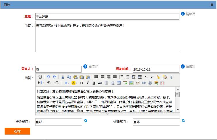3. 管理(lǐ)員(yuán)對把留言推送到對應的處理(lǐ)部門(mén)