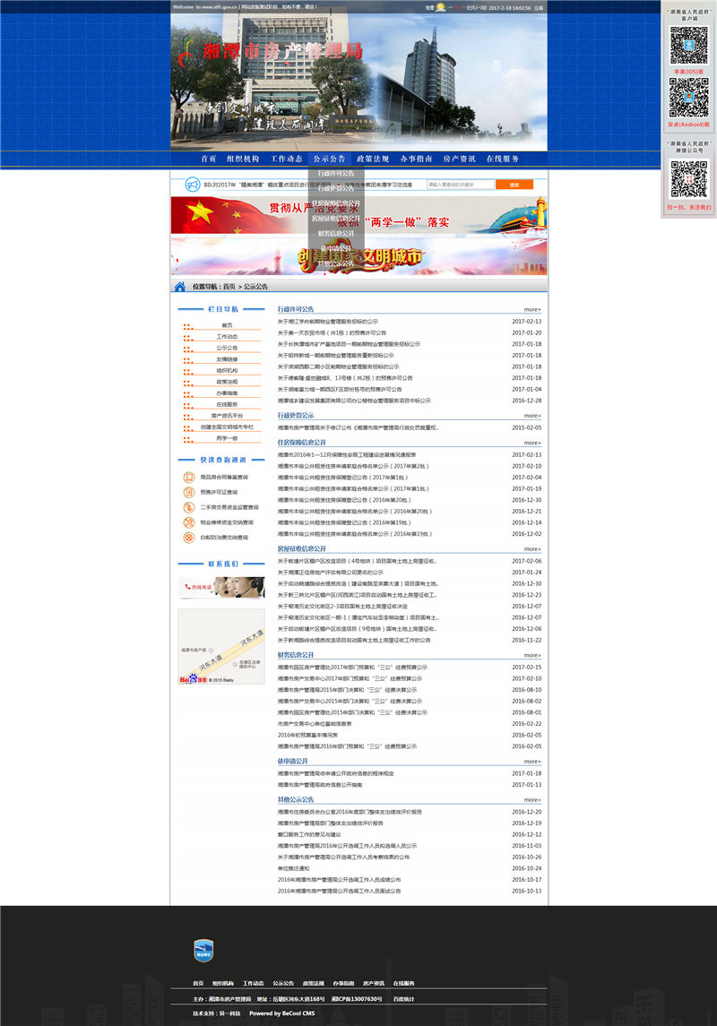 貝一科(kē)技是湘潭市房(fáng)産管理(lǐ)局服務多年(nián)的技術(shù)服務商。次此改版主要針對美工(gōng)升級、欄目整編和功能升級。