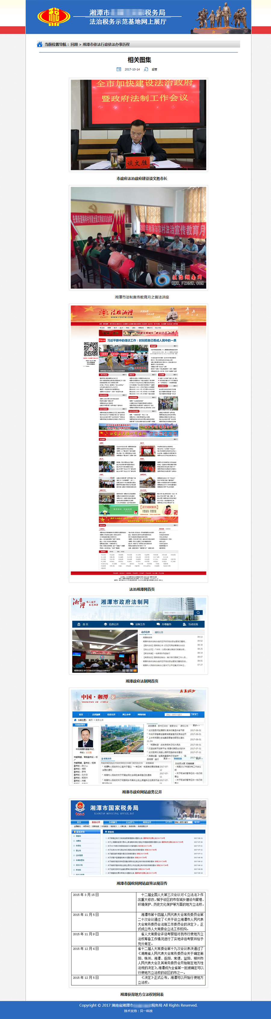 近年(nián)來(lái),區局法治建設屢結碩果,榮獲“湖南(nán)省依法辦事(shì)示範窗(chuāng)口”、“湖南(nán)省法治稅務示範基地”等多項榮譽,區局領導班子也被評爲“湘潭市依法決策示範領導班子”。