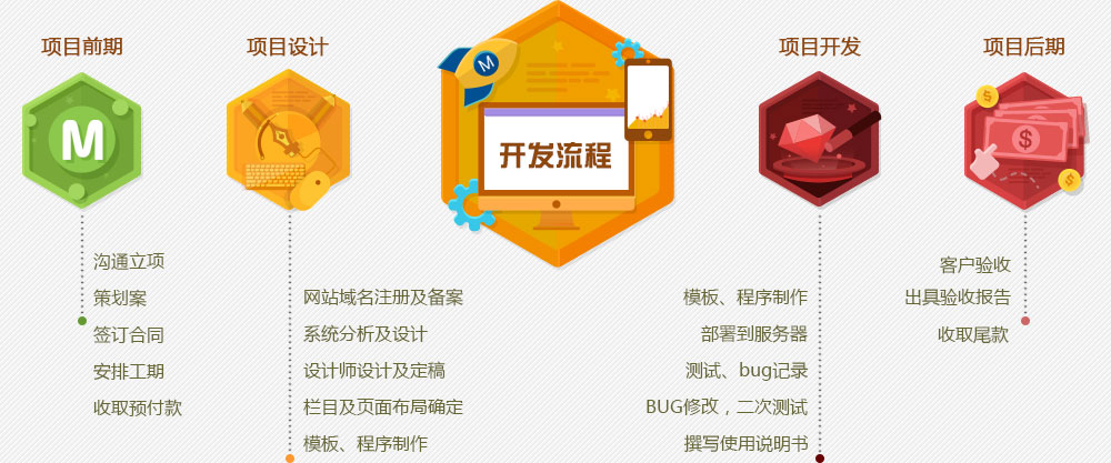 一個項目的費用由BeCool CMS授權費用、系統功能開發費用、内容模闆研發費用、域名空間費用、維護費用等部分(fēn)構成: